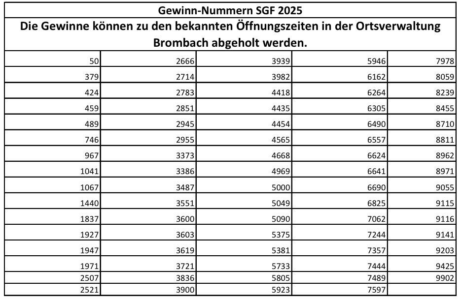 Hier finden Sie nach der Ziehung die Gewinn-Losnummern der Tombola.